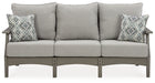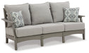 It’s the dawn of a new day for gray. Embrace the style trend with this outdoor sofa. Crafted of HDPE material that combines the exceptional durability and weather resistance you need with the “wood look” you love, this comfortably cushioned sofa takes outdoor living to a whole new level. Rest assured, the thick seat and back cushions and throw pillows are wrapped in our exclusive Nuvella® high-performance fabric that’s fade resistant, stain resistant and a breeze to clean.