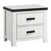 The Wade Youth Nightstand in White brings a modern touch to any room with its sleek black accents and contemporary design. Crafted with stylish black rivet detailing on the black metal trim, it exudes an industrial edge. Featuring spacious drawers with smooth ball bearing glides, this nightstand offers ample storage for clothes and accessories. A dust-proof layer on the bottom drawer ensures your belongings stay clean, while the top drawers are lined with black felt to protect delicate items. Compact in design, it’s perfect for smaller bedrooms, combining functionality and modern style in one stunning piece.