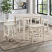 Westlake brings casual farmhouse design to a Counter Dining Set in this compact yet functional group. The 36-inch square table features a plank effect top that is mirrored in the shaped Counter Stool seat and fits the casual style of the collection. With seating for four, the Counter dinette set works well in apartments or smaller homes where space is at a premium.