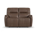 Add sleek sophistication to your living spaces with the Wilson power reclining loveseat with console. Its thin profile design and subtle curves lend a timeless, elevated style, while a handy console offers convenient storage. The pad-over arms, waterfall chaise and center-divided back provide unmatched support for effortless relaxation, while the power recline and headrest allow for customized comfort. Upholstered in a high-quality, cafe brown top grain leather, this loveseat features Flexsteel's patented Blue Steel Spring™ at the heart of each seat, proving unmatched comfort and durability that you can count on.