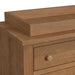 The Wyller Dresser and Topper set exudes timeless charm with its rich finish and exquisite wood grain undertones. English dovetail drawers ensure both durability and classic craftsmanship, while ball bearing glides provide effortless, smooth operation. The dresser features a practical storage topper with built-in organization, perfect for keeping essentials neatly arranged. A dust-proofing bottom layer maintains a clean and pristine look, while round knobs add a touch of refined elegance. Combining style and functionality, the Wyller Dresser and Topper create a sophisticated and practical addition to your nursery, providing both beauty and convenience for your growing family.